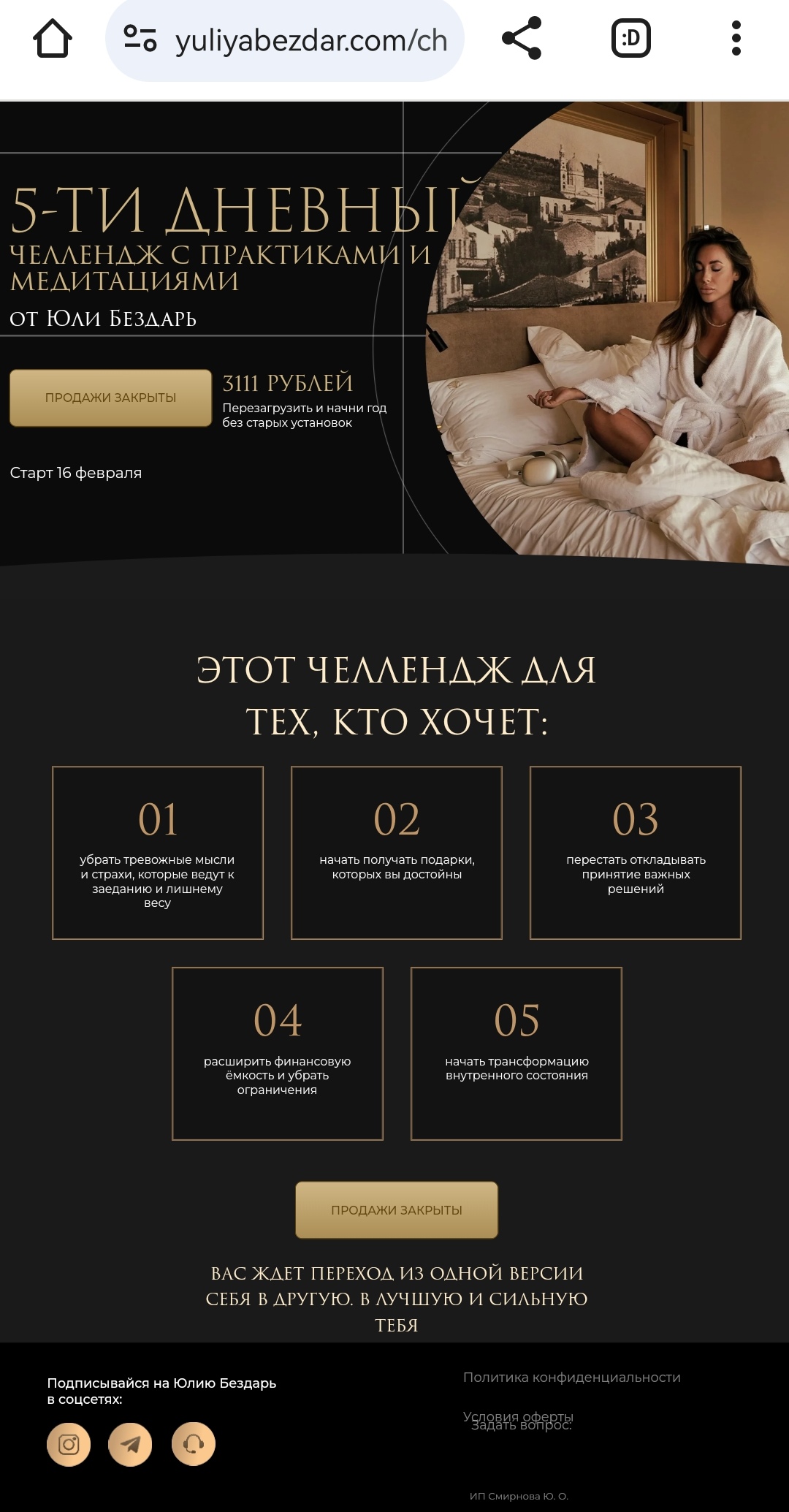5-ти дневный челлендж с практиками и медитациями [Юлия Бездарь]
