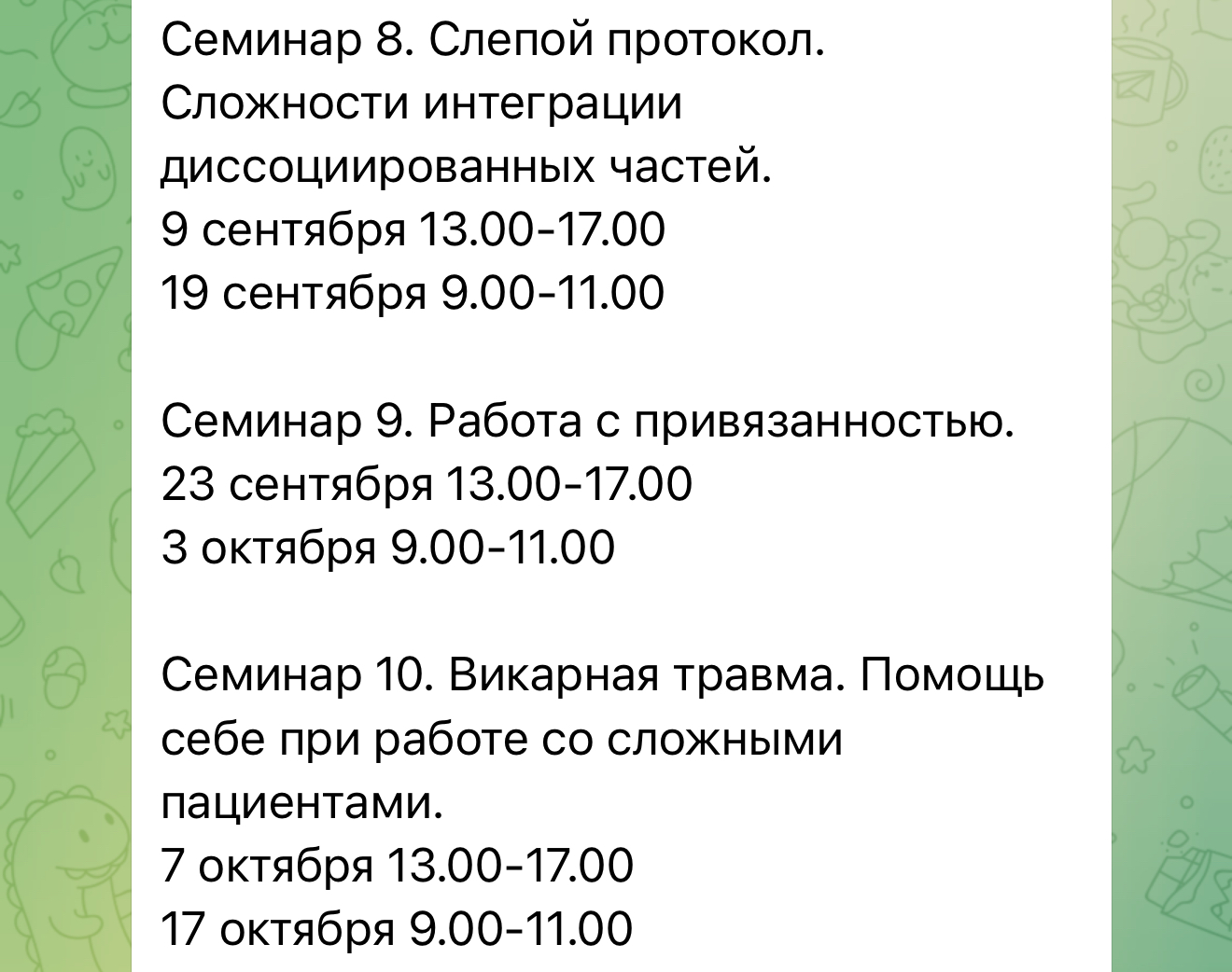 Дорогие коллеги. Для выпускников базового курса ДПДГ разрабатываю серию отдельных семинаров, помогающих работать со сложными клиническими случаями в этом подходе. Это в том числе по эмоционально нестабильных, диссоциированных, с расстройствами личности и т.д.