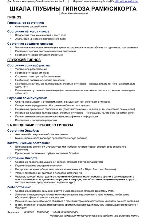 Шкала глубины гипнотического состояния по Джеймсу Рами: