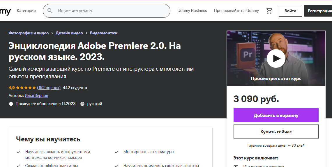 Энциклопедия Adobe Premiere 2.0 На русском языке 2023 [Udemy] [Илья Зернов]