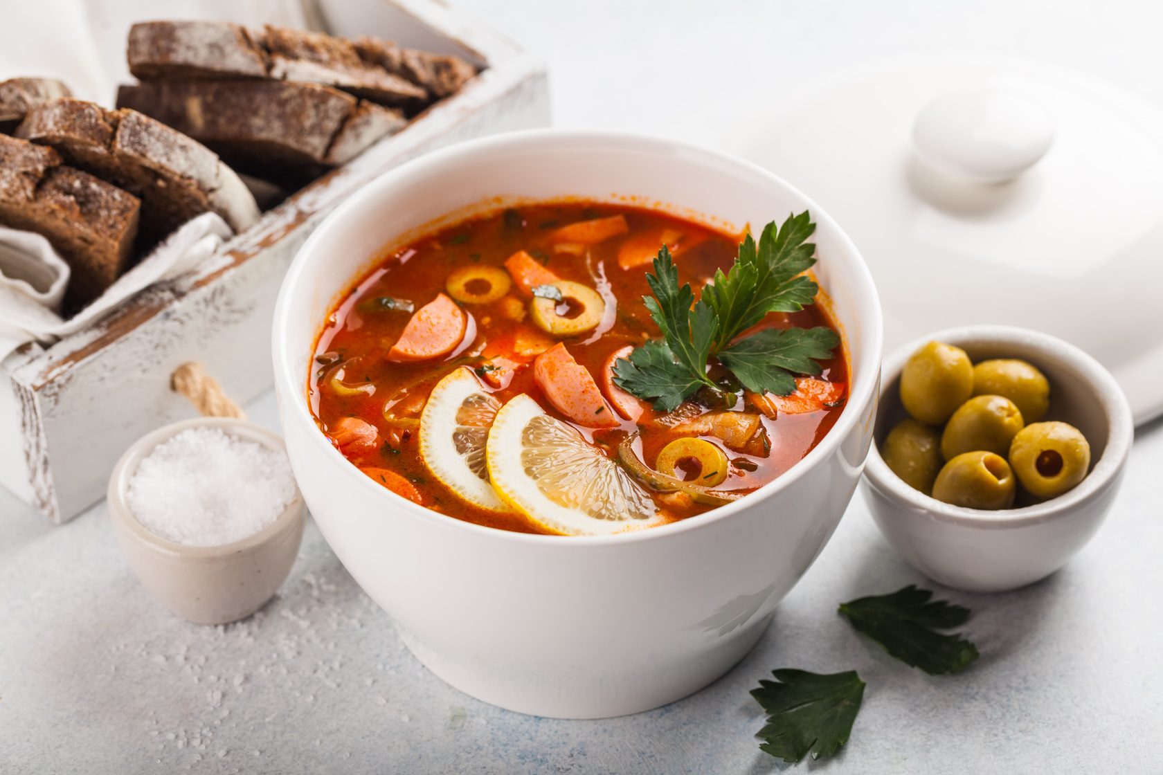 Куриный суп с кнедлями + Борщ классический + Суп риболлита + Солянка мясная + Средиземноморский суп [ЩиБорщи]