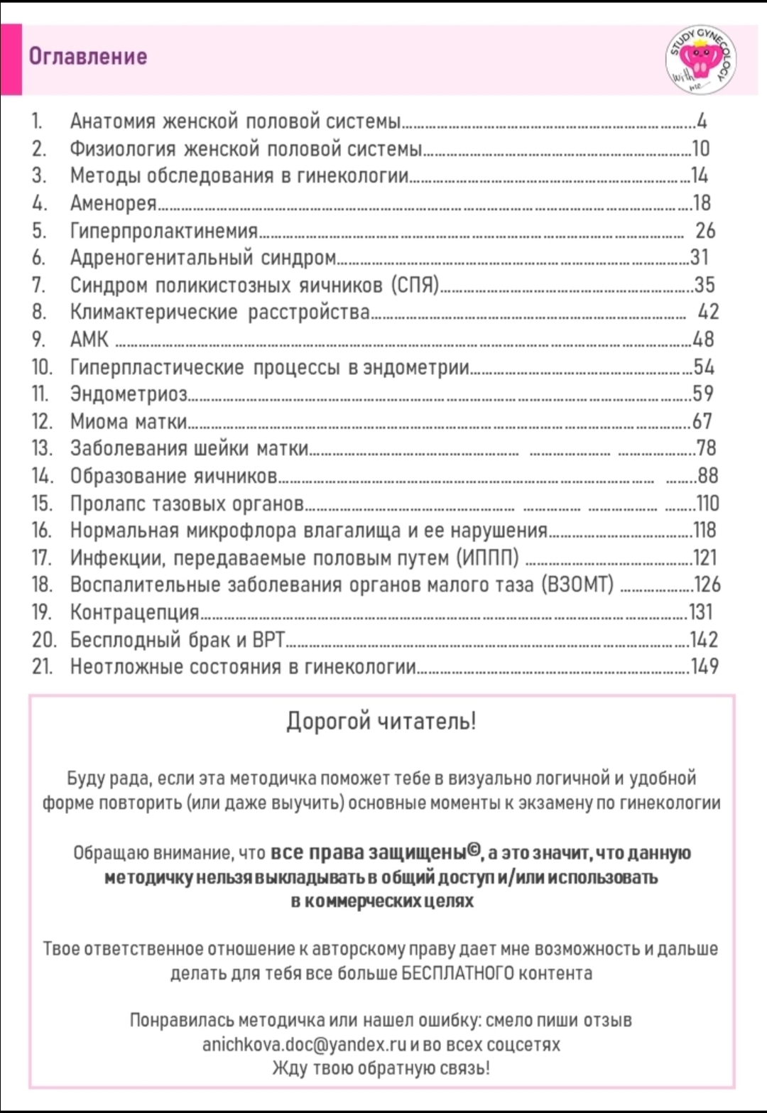 Методичка для подготовки к экзамену по гинекологии [Study Gynecology] [Елизавета Аничкова]