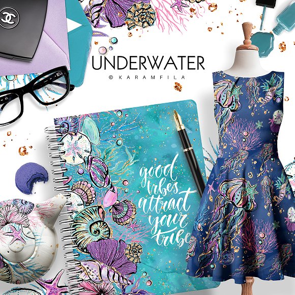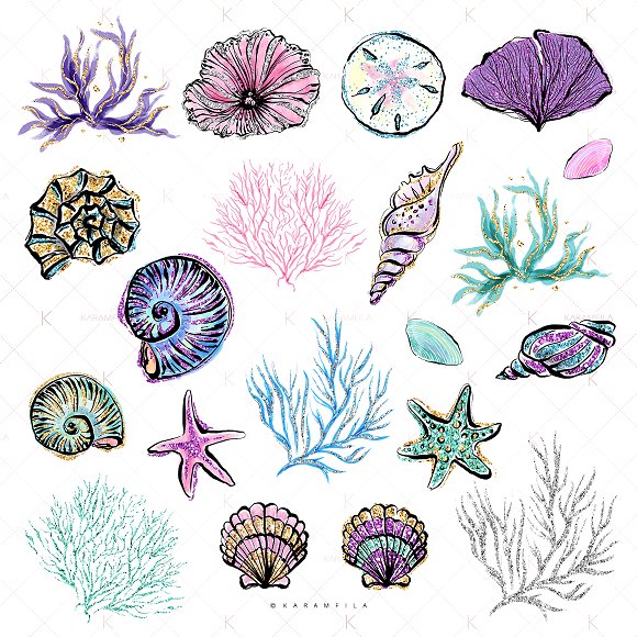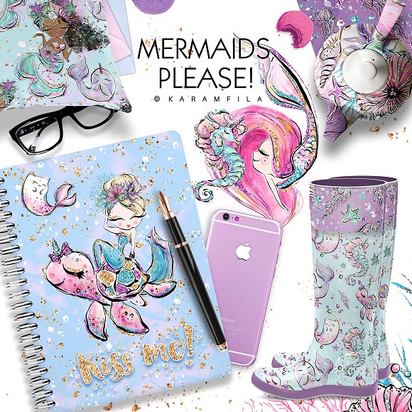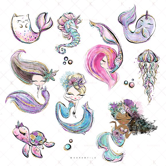 [PNG] Mermaids and Sea Unicorns Clipart [CreativeMarket] [Karamfila Siderova]