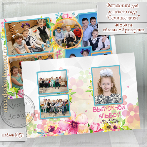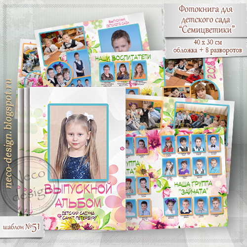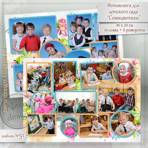 [PSD] Макет фотоальбома для детсада - Семицветики [Neco]