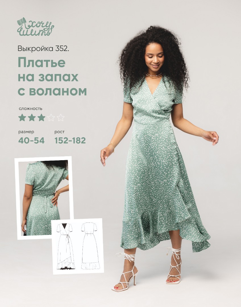 [Шитьё] Платье на запах с воланом №352. Размер 40-54. Рост 154 [wanttosew]