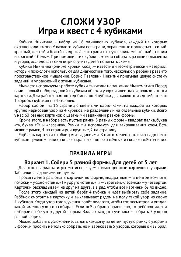 Сложи узор: игра и квест с 4 кубиками [Женя Кац] [Мышематика]