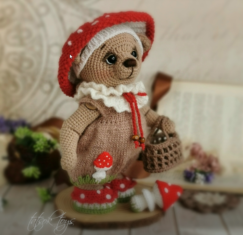 [Вязаные игрушки] Мишка Пончик + Комплект Мухомор [Татьяна Соколова]