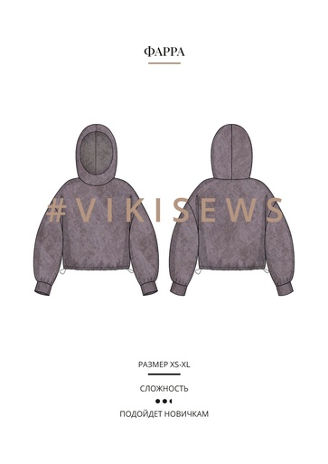 [Выкройки] Фарра худи. Размер XS-XL. Рост 162-168 [Vikisews] [Виктория Ракуса]