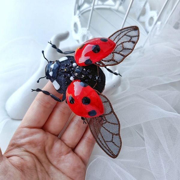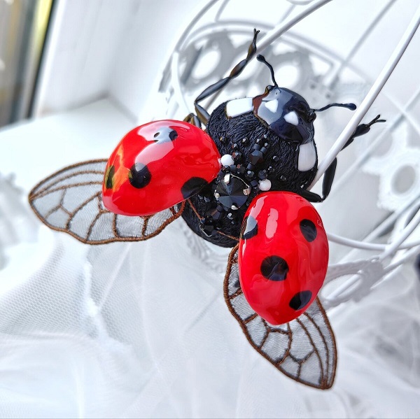 [Вышивка] Архитектурная 3d брошь Божья Коровка [Ангелина Пеях]